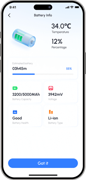Knowledge is power. View a clear and detailed breakdown of your battery's status.